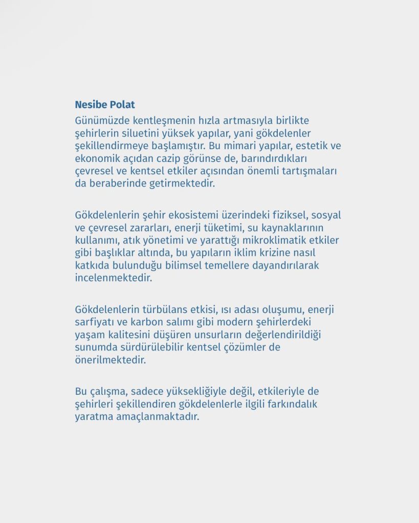 22 Mayıs 2025 Perşembe günü saat 20:30’da Nesibe Polat ile beraber Antroposen Çağdan Belgesel Hikayeler serisinde bu kez de dünyada her yeri ve hayatlarımızı saran gökdelenlerin etkilerini konuşacağız. Antroposen’in yeni bir çağ olarak nitelendirilmesi bilim insanlarına göre dünyamızın geri döndürülemez bir değişime girdiği görüşüdür. Nesibe Polat’ın farklı açılardan incelediği çok geniş kapsamlı hem teknik hem de sosyolojik boyutuyla ele aldığı ”Gölge Etme” belgeseline herkesi bekliyoruz.